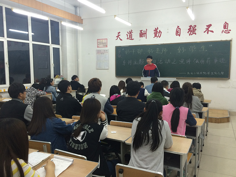 为提高当代大学生道德素质,践行传统美德,弘扬社会正气,学习最美教师张丽莉临危不惧、勇于担当的崇高精神境界,大爱无疆、舍己救人的高尚道德情操,球王会官网,球王会体育于5月5日晚18:00在主楼231举行了以学习最美教师张丽莉为主题,争做“好干部、好老师、好学生”班会活动。本次会议由2014级班长组织,团支书主持,全体同学参加。