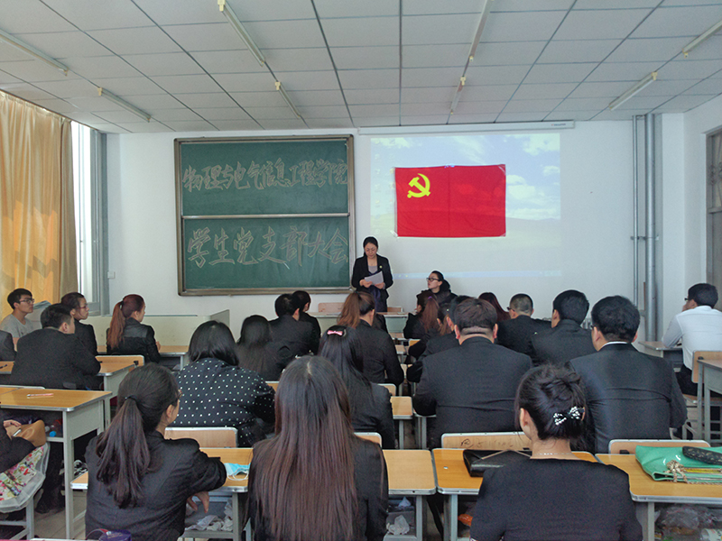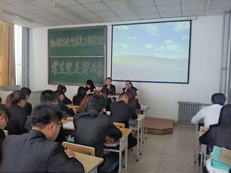 最后,学生党支部书记邓雨巍老师发言说:“发展学生党员,是树立在广大大学生中的标杆形象。学生党员首先应该是普通党员,应该用自己的言行表明自己是中国工人阶级的、有共产主义觉悟的先锋战士。一个党员的形象,直接影响着党的形象,影响着党在人民群众中的威信,而作为大学生党员应充分发挥自己身为党员的作用,以此来影响周围的同学。也希望大家在校期间能牢记自己职责,积极进取,努力上进,处处体现党员的先进性,要牢记空谈误国、实干兴邦,立足本职、埋头苦干,从自身做起,从点滴做起,用勤劳的双手、一流的业绩成就属于自己的人生精彩。”
