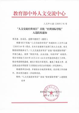 2019年11月7日教育部人文交流中心印发《“人文交流经世项目”首批“经世国际学院”入选院校通知》(人文中心函〔2019〕91号),按照“院校申报、企业对接、专家评审”的程序,遴选了22所本科院校和50所职业学院。球王会成功入选“人文交流经世项目”首批“经世国际学院”项目本科层次合作院校。