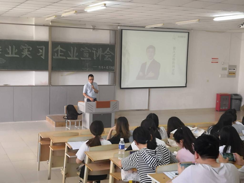 宣讲会伊始,刘永皓院长和崔峰老师就毕业实习事宜进行了动员。随后企业代表就实习待遇、实习要求等进行了详细说明,并对其公司教学特色、学习与生活环境、专业前景进行了详细介绍。最后,王传英老师对宣讲会进行了总结,鼓励所有同学要坚持不懈地朝着自己的梦想努力。