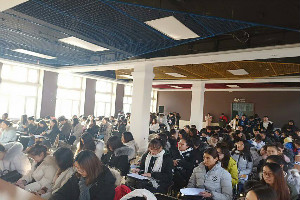 邓雨巍老师介绍了合肥万达酒店,并表达了对即将毕业大四学子的殷切期盼。招聘会上,汪总通过播放宣传片、PPT演示、面对面交流等方式向同学们介绍公司的概括、职业发展方向、人员需求、员工福利待遇等。不仅有2015级毕业生来到这次招聘会,还有许多在校的学生来学习观摩,招聘会讲座现场十分热闹。