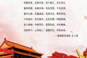 回顾往昔,改革之路,复兴之路,任重道远,不忘初心,奋力前行,铁人的足迹遍布庆师,庆师学子永葆初心,坚定不移的将大庆精神、铁人精神与新时代精神相结合,以实际行动筑中国梦。