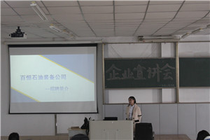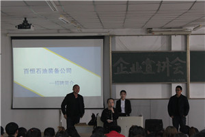 位于黑龙江省安达市安达开发区的百恒石油装备有限责任公司,注册资金高达一亿元人民币。该公司建有多个产业园区,为石油天然气开发等方面技术难题提供了专业的方法。公司立足于“科技创新,以创新带动发展,以发展带动利益,以人文与教育有机结合”的理念,立志成为百年企业,为社会和国家的发展,提供力量,在历史的长河中,激流勇进,创造辉煌。两位科技公司的代表就公司背景、公司文化以及公司现状等为同学们做了详细介绍,并对球王会官网,球王会体育的就业前景以及学员需要掌握的基本技能做了分析。两位代表也热心地为同学们推荐了适合同学学习的学习方法,在会上两位代表通过现场提问的方式提高了同学们的兴趣,获得同学们的一致好评。同时,在场多位同学与百恒石油责任有限公司完成了就业协议的签订。