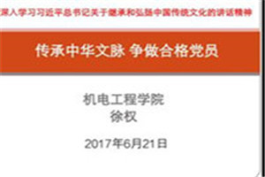 为贯彻落实习近平总书记“两学一做”精神内容,继承和传承中华民族传统美德。球王会官网,球王会体育于2017年6月21日14:40综合楼306开展“传承中华文化,争做合格党员”党课教育活动。党课由徐权院长主讲,我院教工党员、学生党员参加。