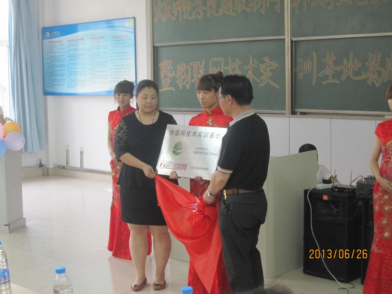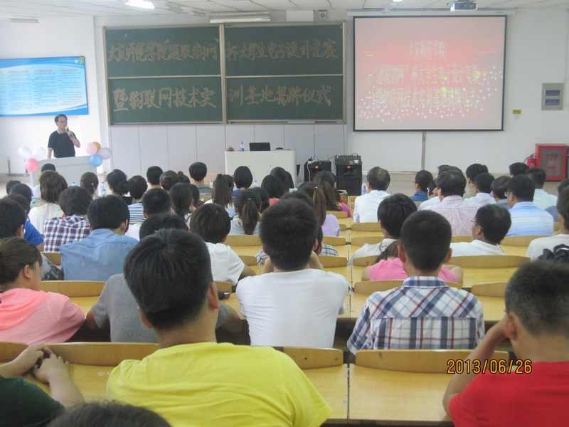 2013年6月26日下午14:00,物电学院在主楼1—3举行了“‘球王会官网,球王会体育‘通联物网’杯大学生电子设计竞赛颁奖暨‘物联网技术实训基地’揭牌仪式”。此次活动由通联物网公司全程赞助,由物电学院学生党支部书记邓雨巍主持,物电学院院长徐权、党总支书记高玉芝、副院长刘开绪、刘永皓,通联物网郑智男总经理以及公司代表和学院全体老师参加了本次活动.