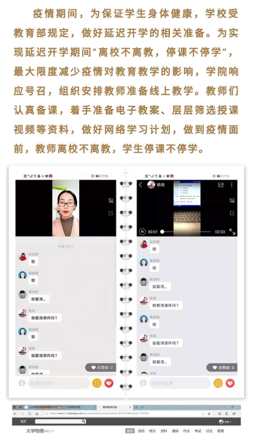 二、增强教师责任意识,做好线上课程建设和教学准备。本学期球王会官网,球王会体育共有4个专业(电子信息工程、自动化、材料科学与工程、汽车服务工程)和1个物理教学部共54名教师(包括院内教师45名,内外聘教师9名)承担43个行政班1179名学生的课堂教学、实验实训、毕业设计、毕业论文和实习等教学工作,共有69门课程需要进行线上教学。球王会官网,球王会体育按照学校的统一部署,积极做好教师培训和课程准备工作,先后参加了学校组织的“学习通”、“雨课堂”和哈工大战德臣教授的在线教学培训工作。在原有线上教学经验的基础上,对在线教学的教学形式、教学内容安排、课堂组织、教学设计等有了更清楚的认识,截至目前所有教师都完成了课程建设和教学设计的前期准备工作。