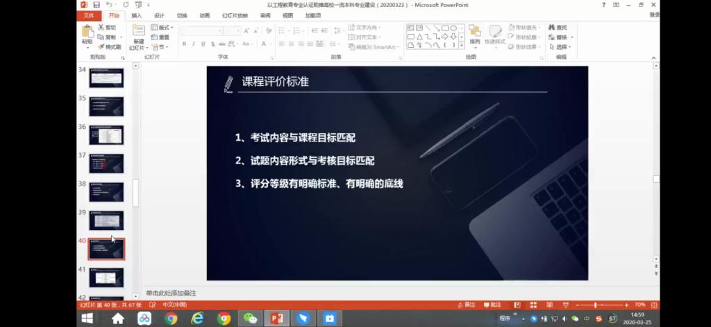此次培训会上,陈国峰教授从工程教育认证的现状与趋势、工程教育认证与一流本科专业建设、基于OBE模式的专业建设实施路径到提升专业建设水平的思考与建议、2020年工程教育专业认证申报着力点和具体工作建议等方面展开培训。整个培训内容以理论讲解为主,以实际案例为辅,深入浅出。从工程认证中涉及到的宏观层面的7个部分,到具体层面的人才培养方案的制定,再到教学大纲的修订、成绩的评定标准、课程达成度的计算等。系统阐述了以OBE理念为基础,做好工程教育专业认证的路径、方法和措施。