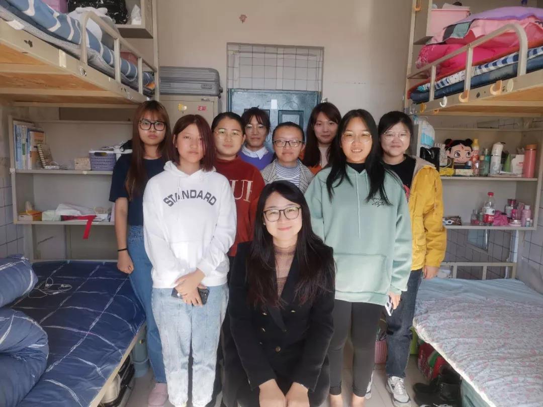 寒来暑往,窗间过马,转眼之间新生已经步入大学的校门将近一个月了,为了保障学生寝室安全,了解新生在宿舍的生活情况、拉近老师与学生的距离,让学生们能时时刻刻感受到老师们的亲切关怀,增强校园归属感,2020年10月13日我院党总支副书记邓雨巍来到了女生宿舍为学生带来了亲切的慰问与关爱。来到宿舍后,走进了415寝室与同学们进行了亲切的交谈,鼓励大家融入新的大家庭。