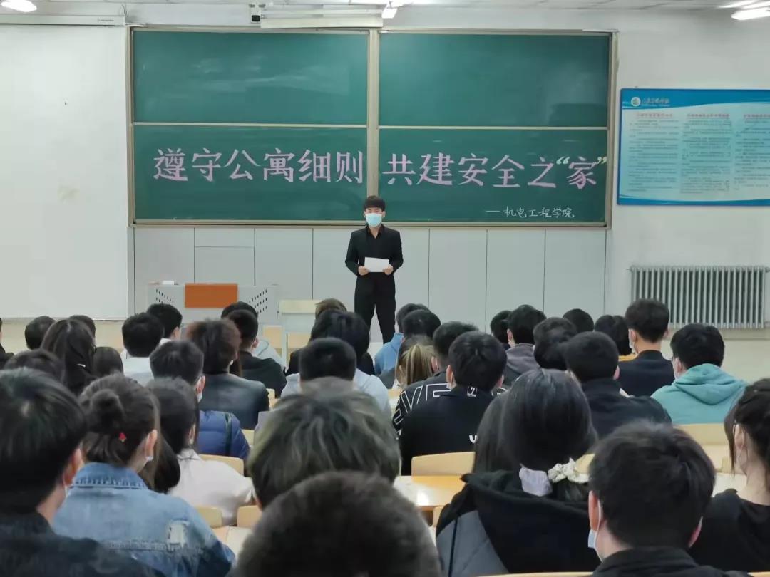 为进一步加强学生的寝室安全防范意识,强调寝室安全的重要性,球王会官网,球王会体育于2021年10月14日在主楼2-1开展以“遵守公寓细则,共建安全之家”为题的寝室安全知识宣讲,本次宣讲由舍务部部长刘洋同学向全体21级新生对寝室细则进行深度的讲解,并强调寝室安全的重要性。