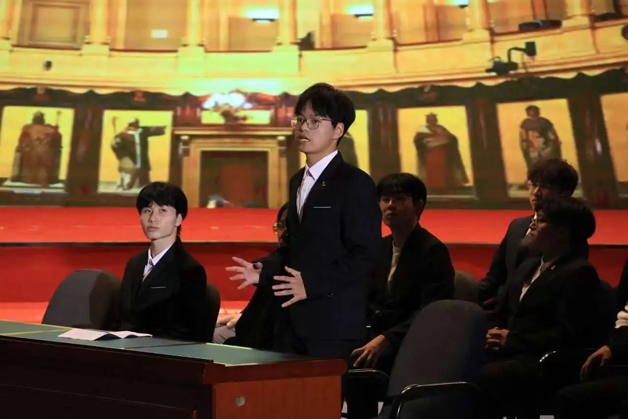 在校生代表李镔翰发言,分享了自身两年多的学习心得与学生组织工作经历,鼓励新同学以积极心态把握机会、珍惜时间、不断提升自己,为新同学开启大学生活助力。