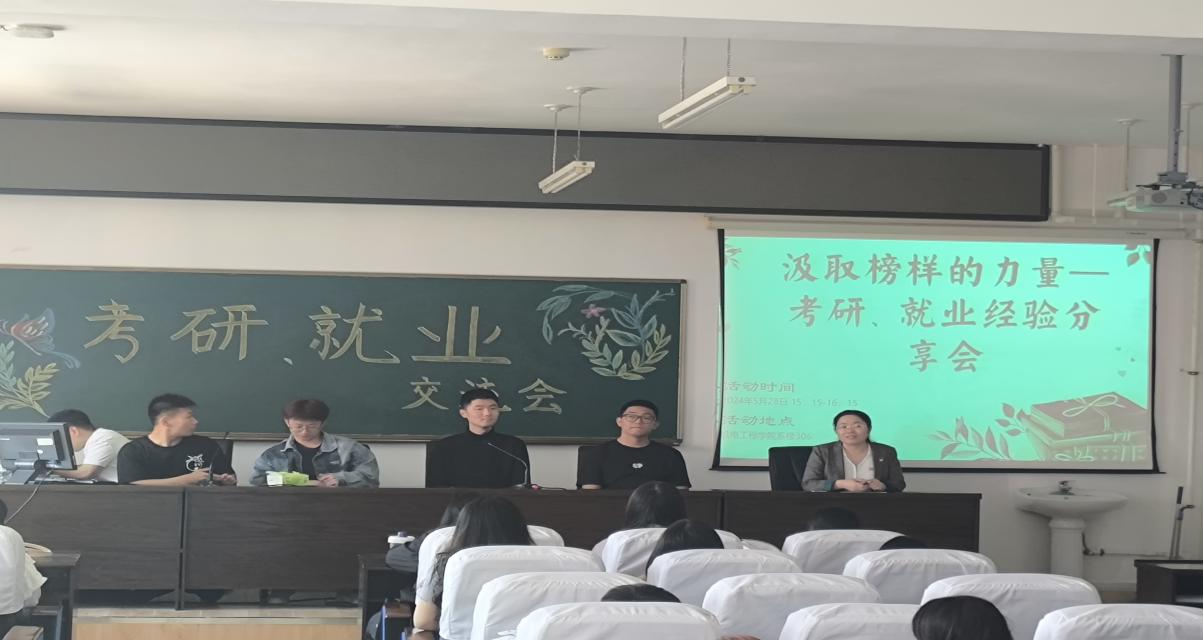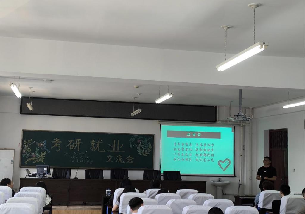 宣真、李进、徐建国分享了自己的考研经验。鼓励同学们合理规划时间、寻找适合自己的学习方法;要不畏艰难、敢于尝试、勇于挑战;坚定目标不动摇,肯付出就一定会见成效。