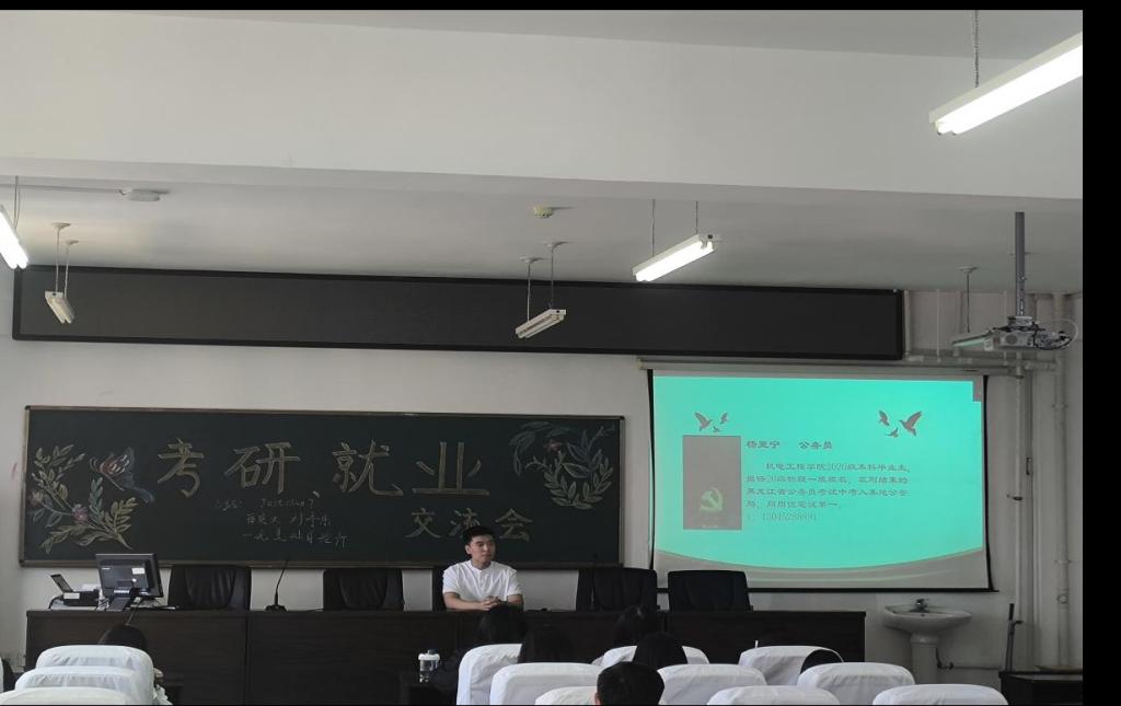 杨亚宁同学介绍了公务员考试的相关情况,建议同学们要及早着手备考。董文明同学分享了大学生志愿服务西部计划的情况,鼓励大家要有一颗奉献祖国建设的爱心与志向。