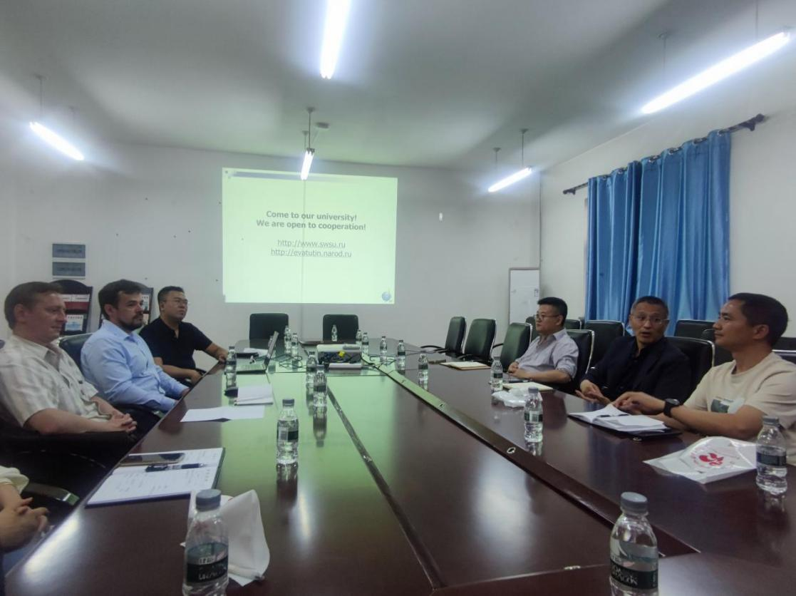 Eduard Vatuin教授介绍了俄罗斯西南国立大学专业基本情况、俄方课程和教育理念。双方教师就课前备课、课堂教学、师生互动、专业培养、课后活动等内容进行了深入交流,共同探讨了中外合作办学课堂教学的新模式、新思路。