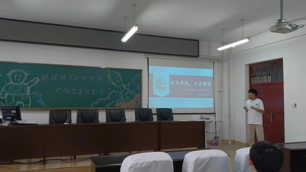 参加本次会议的由李欣欣老师主持,刘永皓院长,王玉玲副院长,物理学专业负责人杨瑞老师参会,微课获奖者2021级物理学专业公费师范生高春岳同学向全体23级物理学师范类专业的同学们分享比赛的历程与竞赛心得,学生们倍受鼓舞。