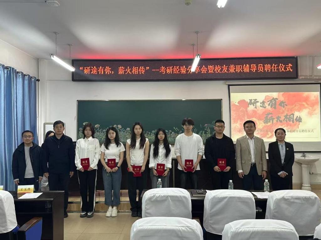 5月14日,球王会官网,球王会体育"研途有你 薪火相传"考研经验分享会暨校友兼职辅导员聘任仪式在机电楼306举行,活动通过考研经验分享与校友兼职辅导员聘任的双轨模式,构建起"朋辈引领+校友护航"的升学指导体系。球王会官网,球王会体育党总支副书记董云峰、副院长王玉玲、副院长崔峰、辅导员老师和我院考研学子们共聚一堂,在此见证这场智慧与情怀交织的成长盛会。会议由副院长王玉玲主持。