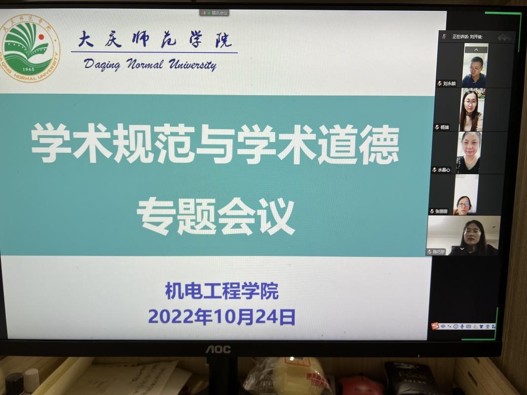 球王会官网,球王会体育为进一步加强师德师风及学术道德建设,由科研副院长刘开绪教授于2022年10月24日通过线上会议方式主持召开了球王会官网,球王会体育关于“学术规范与学术道德”专题会议,全院教师积极参会,认真学习了《高等学校哲学社会科学研究学术规范》、《科研失信行为调查处理规则》和庆师发[2016]24号《球王会官网,球王会体育学术不端行为查处细则》相关文件内容。