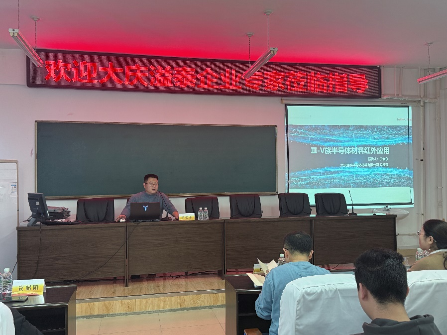 于会永总经理为学院师生详细介绍了Ⅲ-V族半导体材料红外应用的相关内容,包括半导体材料现状、Ⅲ-V族半导体材料特性与应用、砷化镓等具体材料情况、企业发展成果以及在研产品等。本次学术讲座旨在通过学术交流让师生们了解半导体行业发展情况,推进深化产学研合作。