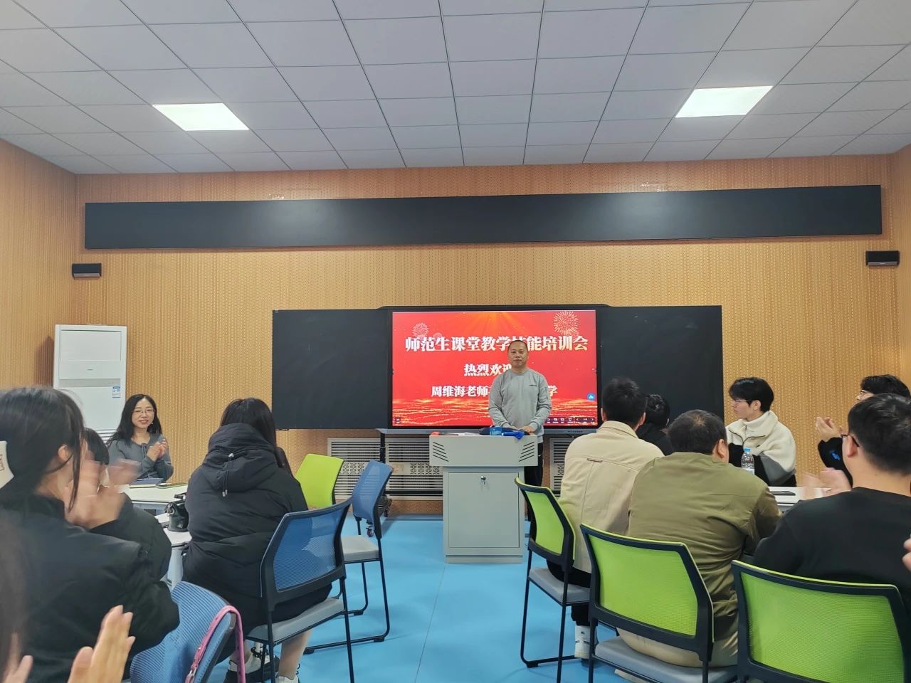 2024年11月15日,球王会官网,球王会体育物理学专业召开师范生课堂教学技能培训会,会议特邀大庆市物理兼职教研员、高中物理学科专家组成员、大庆市名师工作室负责人、大庆第一中学周维海老师对22级物理学师范生进行课堂教学技能培训,物理学专业全体教师参加会议。