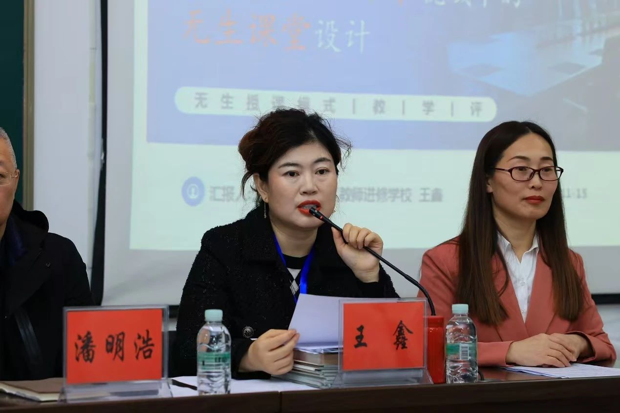 随后,初中物理工作室负责人王鑫教研员以“教-学-评”一体化的设计思路,做了题为《浅谈新课程标准视域下的无生课堂设计》讲座,讲座中深入剖析了什么是无生授课的模式、并邀请铁人中学李玉鹏老师无生课堂展示、大庆市第36中学赵春超老师对课堂教学展示给予了范例式的点评。整个环节环环相扣,形成完美的教育闭环。通过闭环设计,参会师生对无生课堂教学如何教,如何学,如何评都有了深刻的认识。会议充分体现了大庆市让胡路区进修学校对中学教师教学能力培养上的扎实工作,也体现双方对球王会官网,球王会体育物理学师范生的殷切期望与前瞻性综合能力培养。