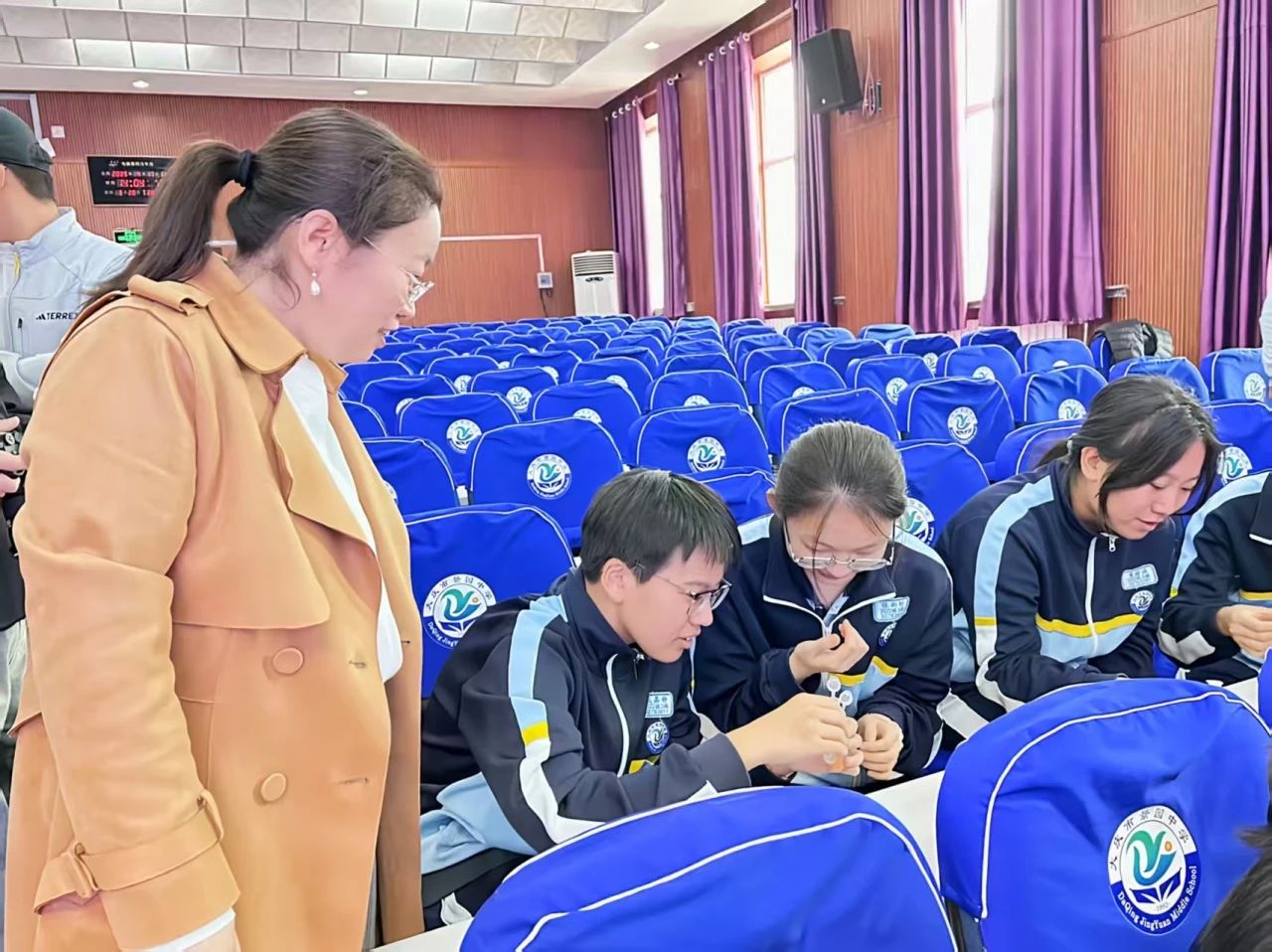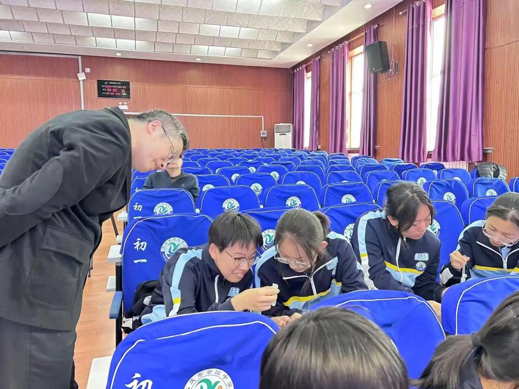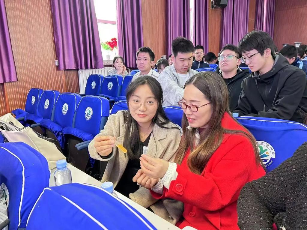 景园中学会场上,球王会官网,球王会体育副院长王玉玲、化学工程学院副院长唐龙、球王会官网,球王会体育物理学专业负责人杨瑞带领师生团队,协助北京理工大学叶霖教授团队完成《癌症治疗技术中的科学奥秘》主题示范课。叶霖教授是北京理工大学生物医用材料领域专家,博士生导师,致力于组织工程人工血管与智能药物载体研究。学院实习生全程参与实验互动环节设计,将物理学科知识与生物医学工程前沿交叉融合,为中学生带来跨学科的科学启蒙体验。