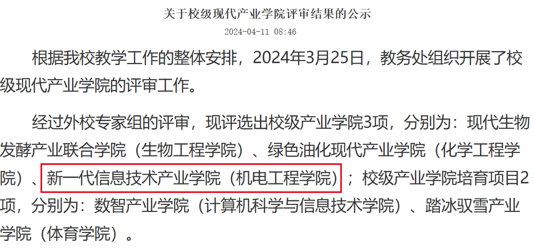 2024年4月获批校级产业学院,于同年申请省级产业学院项目。